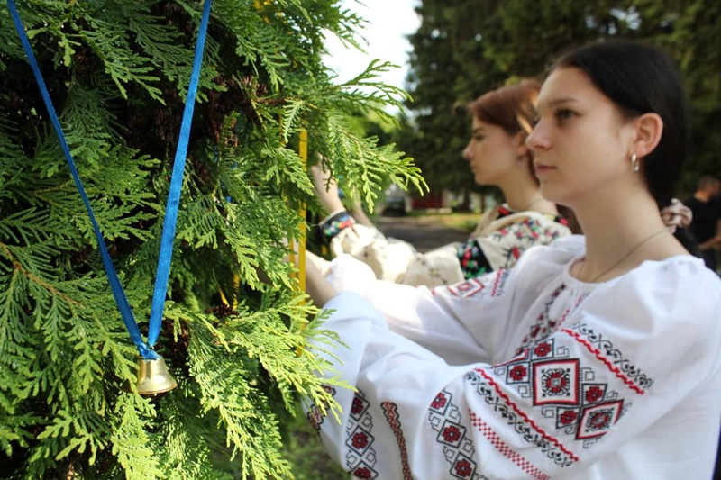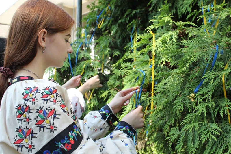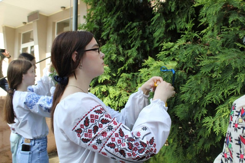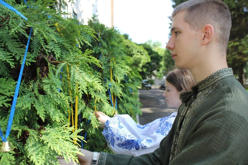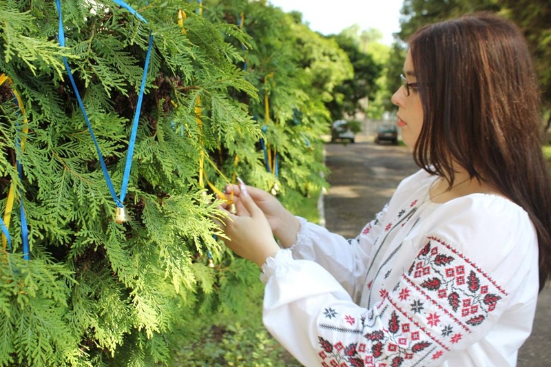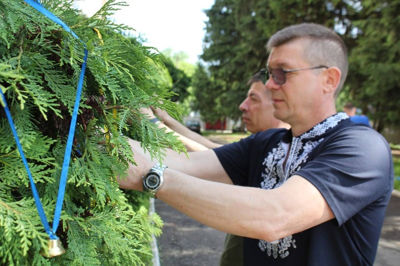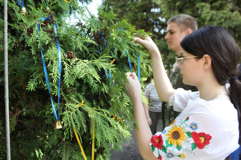 Здобувачі освіти, учителі й працівники ліцею розмістили на деревах дзвіночки, щоб ушанувати пам’ять загиблих українських дітей.