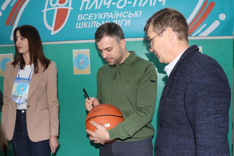 Разом із Юрієм Музикою, начальником Управління освіти і науки ОДА та Денисом Закружним, начальником обласного відділення (філії) Комітету з фізичного виховання та спорту МОН, Ольга Бібік підписала м’яч для команд ліцею.