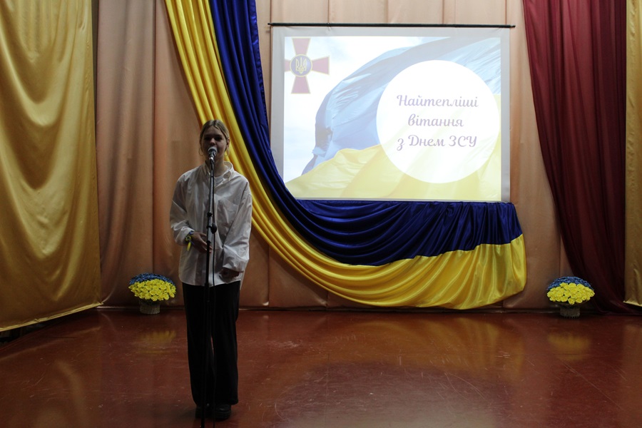 Здобувачі освіти ліцею й коледжу привітали військовослужбовців та працівників-ветеранів ЗСУ музичними номерами.